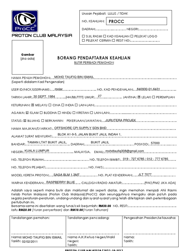 Contoh Borang Permohonan Ahli Kelab Motor Pdf
